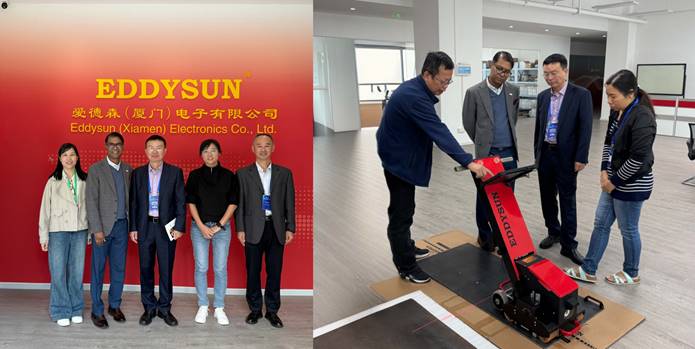 为期三天的大会报告结束后,爱德森公司组织与会专家学者进行技术参观与交流。ICNDT主席Dr. Sajeesh Kumar Babu、希腊雅典国家技术大学Prof. Evangelos Hristoforou、日本JPEIC研究所Prof. Weiying Cheng、俄罗斯JSC Krastsvetmet公司的Mr. Suslov Ruslan Pavlovich、伊朗Parsian Gas Refinery公司的Mr. Mehdi Emami和Pishro Payesh Company公司的Mr. Mohammad Fallahi、泰国Dexon Technology PLC公司的Dr. Goratouch Ongtrakulkij和Mr. Jirat Tulyaprawat等与会专家及行业同仁参观爱德森公司。